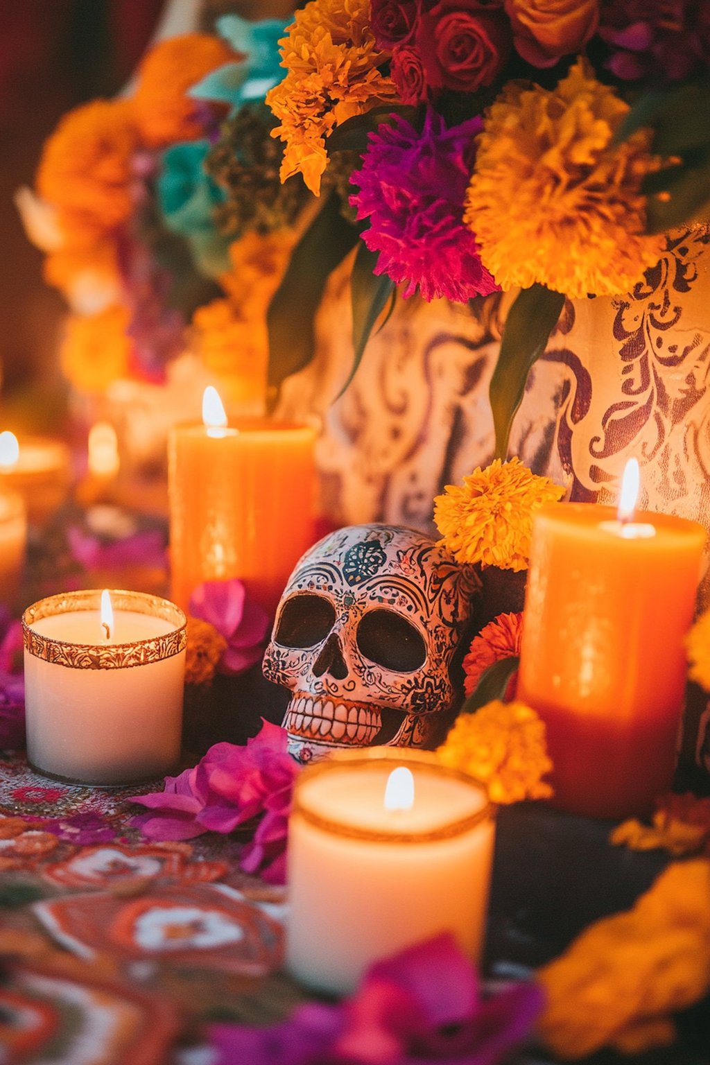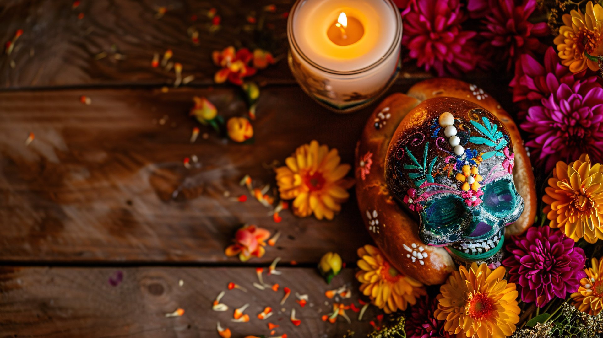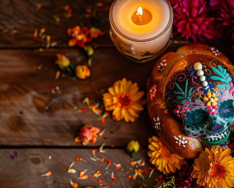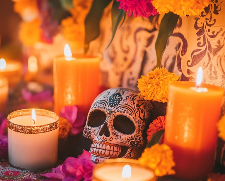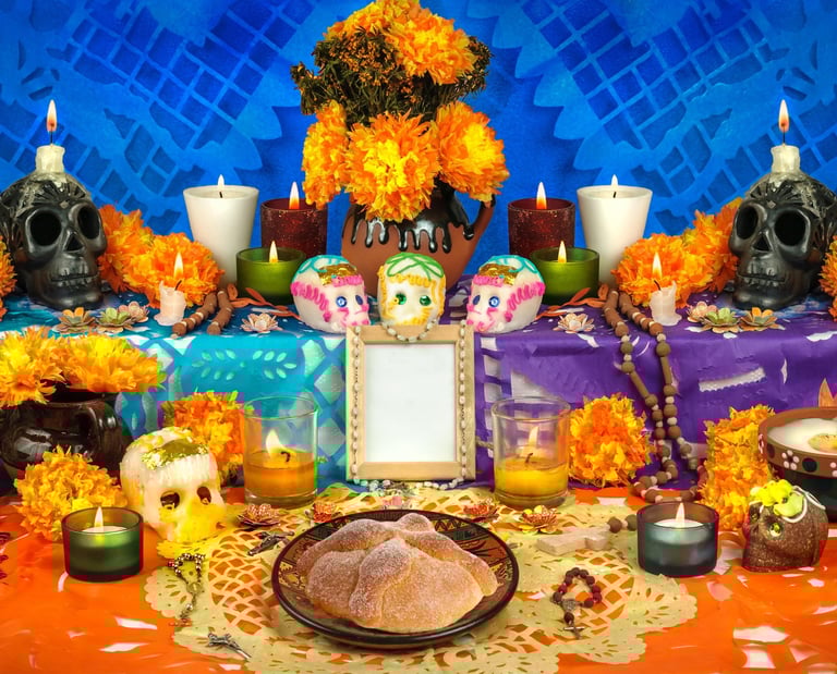 -Velas -Cempaxuchitl -Calaveras -Hojaldras -Objetos